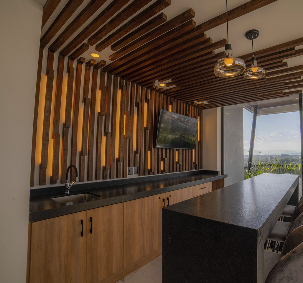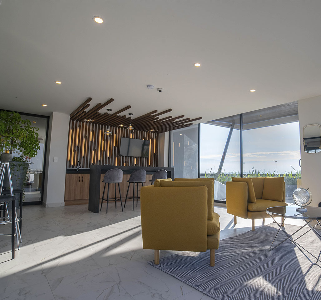 Contamos con una sala, barra tipo bar y pantalla Smart tv, así como una terraza abierta para